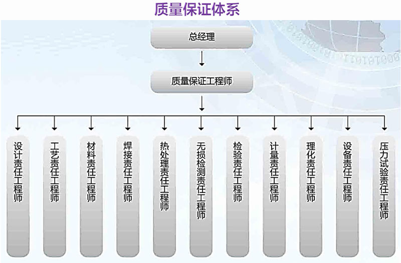 公司具有嚴(yán)格的質(zhì)量保證體系,擁有在壓力容器、壓力管道行業(yè)有多年從業(yè)經(jīng)驗的高級工程師、工程師任質(zhì)量責(zé)任工程師,對從設(shè)計、工藝、生產(chǎn)到產(chǎn)品檢驗的每一個環(huán)節(jié),層層把關(guān),嚴(yán)密監(jiān)控,確保壓力容器產(chǎn)品的質(zhì)量與安全性能均達(dá)到甚至高于《固定式壓力容器安全技術(shù)監(jiān)督規(guī)程》、GB150、GB151、GB50235、GB50236等法規(guī)、標(biāo)準(zhǔn)、規(guī)范要求。